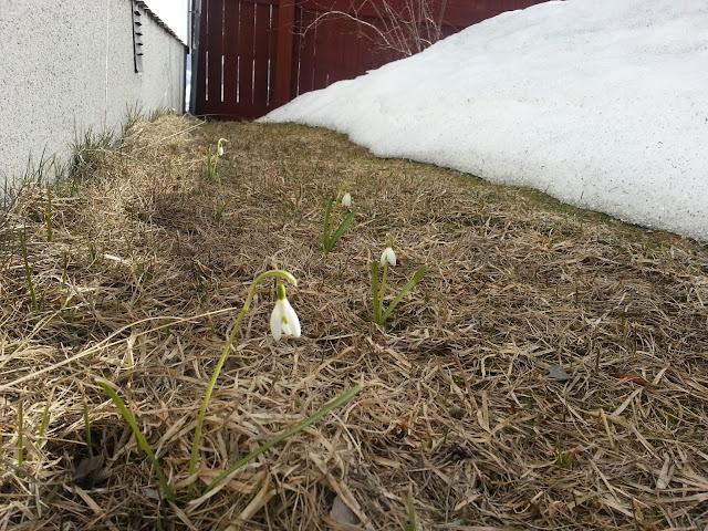 Den här bilden tog jag för två dagar sedan när gräsmattan skiftade från brun till grön: